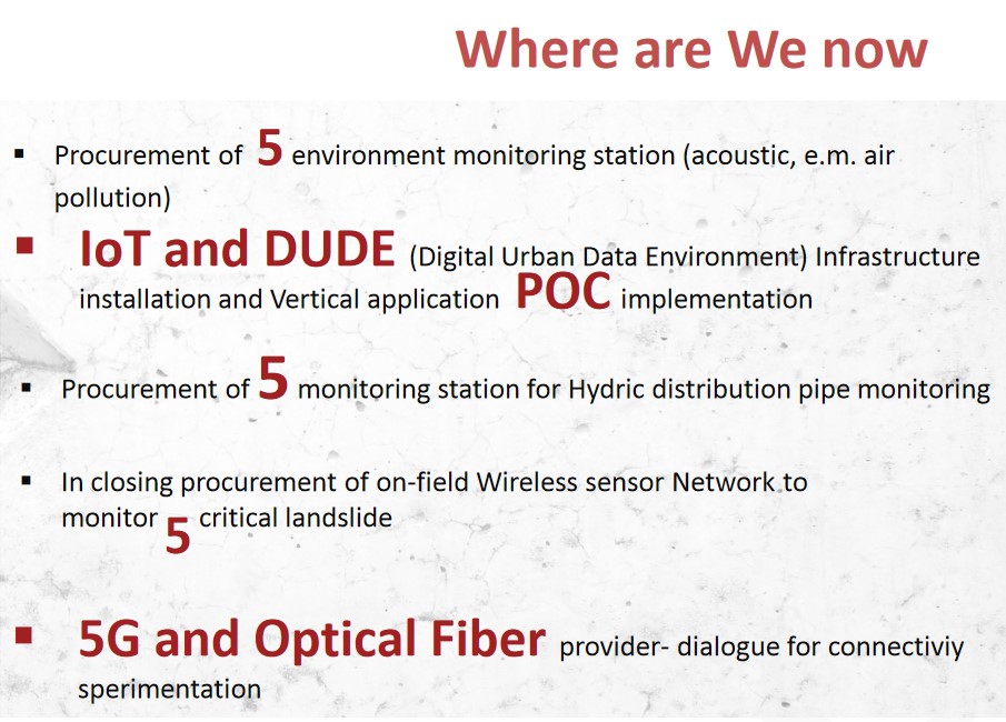 In particolare, il sistema permette di monitorare diversi aspetti, tra cui l'assetto idrogeologico, la sicurezza sismica, il monitoraggio della rete idrica, l'uso delle risorse naturali e i consumi energetici, i rifiuti, la sicurezza urbana tramite analisi in tempo reale di punti sensibili e l'efficienza energetica. I dati sono accessibili agli utenti attraverso il portale dell'amministrazione e altri portali previsti da interventi correlati, come AGORA'.