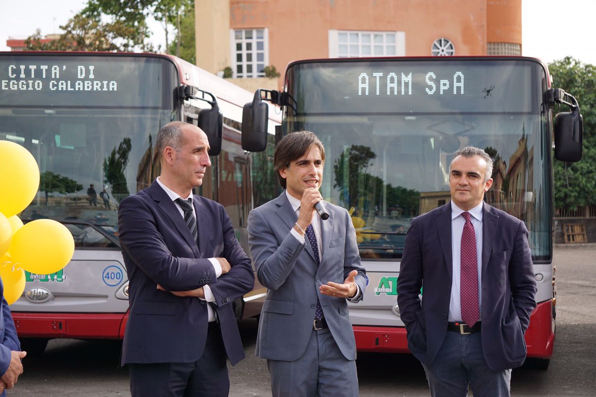 Nella splendida cornice di Piazza del Popolo di Reggio Calabria, il sindaco Giuseppe Falcomatà ha presentato alla città i primi 14 autobus frutto del finanziamento europeo Pon Metro, insieme all’assessore alla mobilità Giuseppe Marino e all’amministratore unico di Atam Francesco Perrellli. Atam potrà rafforzare immediatamente il parco macchine comunale per le esigenze del trasporto pubblico locale. A questi 14 autobus, ne seguiranno altri 25 entro ottobre, a completamento della scheda progetto Pon Città Metropolitane di rafforzamento dei mezzi della flotta comunale per il trasporto pubblico locale, programmata per 8.850.000,00 euro sull’asse mobilità del programma coordinato dall’ADG Pon Metro Giorgio Martini dell’Agenzia per la Coesione Territoriale e destinato a tutte le città metropolitane.