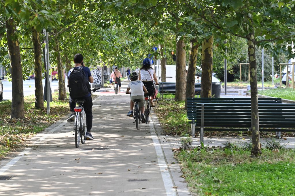 Circa 2,5 chilometri di nuovi percorsi ciclabili al posto di un percorso pedonale tra due filari di platani. Corso Sempione cambia volto, da spazio che ospitava sosta irregolare diventa un Viale con più verde pubblico per pedoni e ciclisti grazie ad una larghezza di circa 90 metri, e meno auto. Attraverso l’intervento incrociato sulla mobilità del Pon e Poc Metro il nuovo assetto, terminati i lavori, presenta una pavimentazione ecologica in terra stabilizzata che sostituisce la precedente in asfalto, delimitata da cordoli di granito. Oltre ai percorsi destinati ai ciclisti il Viale presenta ora due nuovi asset pedonali oltre il doppio filare dei platani e paralleli alle ciclabili, pavimentati in calcestruzzo drenante con aree di sosta che garantiscono un’ombreggiatura con panchine, rastrelliere per bici e fontanelle.