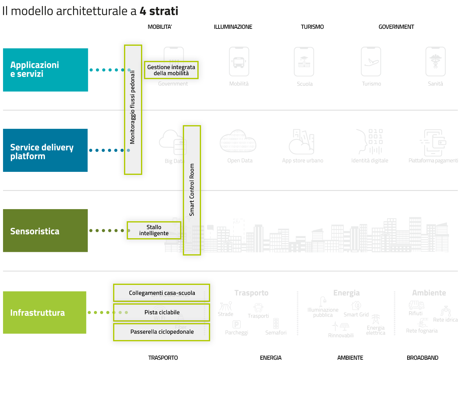 L’analisi riporta i progetti dell’Asse I – “Agenda Metropolitana” e dell’Asse 2 – “Sostenibilità dei servizi pubblici e della mobilità urbana” contenuti nel Piano Operativo, e la loro coerenza con una strategia per strati nella costruzione della metropoli smart, in modo da evidenziarne l’impatto sui punti di forza e debolezza.
